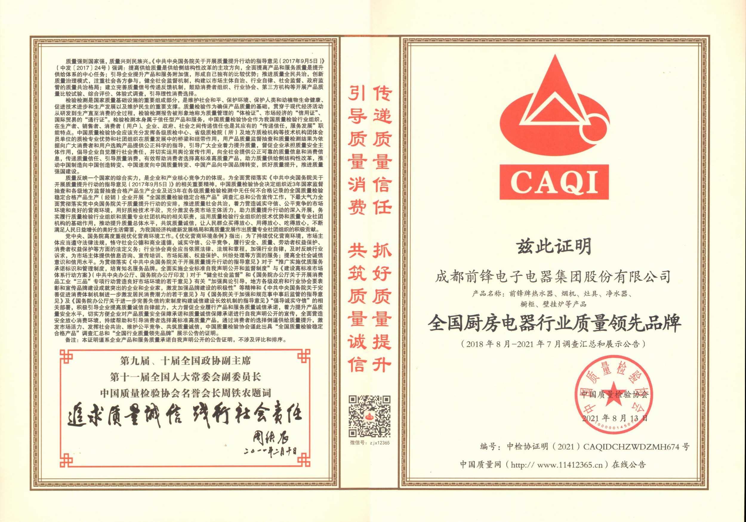 弘扬工匠精神,坚持质量第一。近日,必一运动厨电凭借着过硬的产品质量,良好的市场口碑,被中国质量检验协会授予厨房电器行业质量领先品